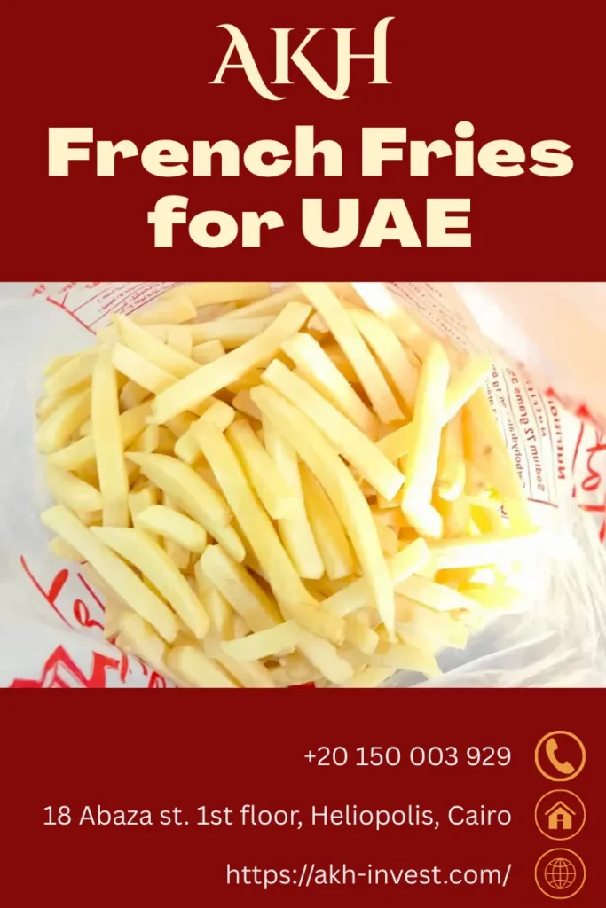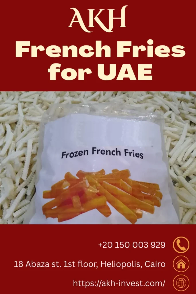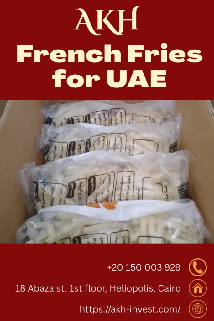 لذلك، نحن في AKH نبحث دائمًا عن فرص استيراد فرنش فرايز من مصر إلى الإمارات، بهدف تلبية احتياجات السوق الإماراتي المتزايدة وتوفير الفرصة لدولة عربية شقيقة في أن تظهر في أفضل صورة أمام دول العالم بفضل توفير منتجات عالية الجودة.
