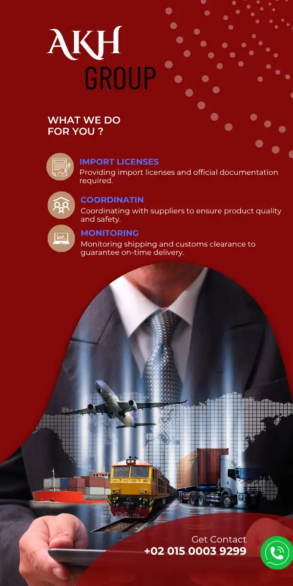 AKH is a leading company in importing products from abroad to Egypt and the Arab countries, with over 13 years of experience in global markets, making us your ideal partner to expand your business and achieve commercial success with confidence and professionalism.